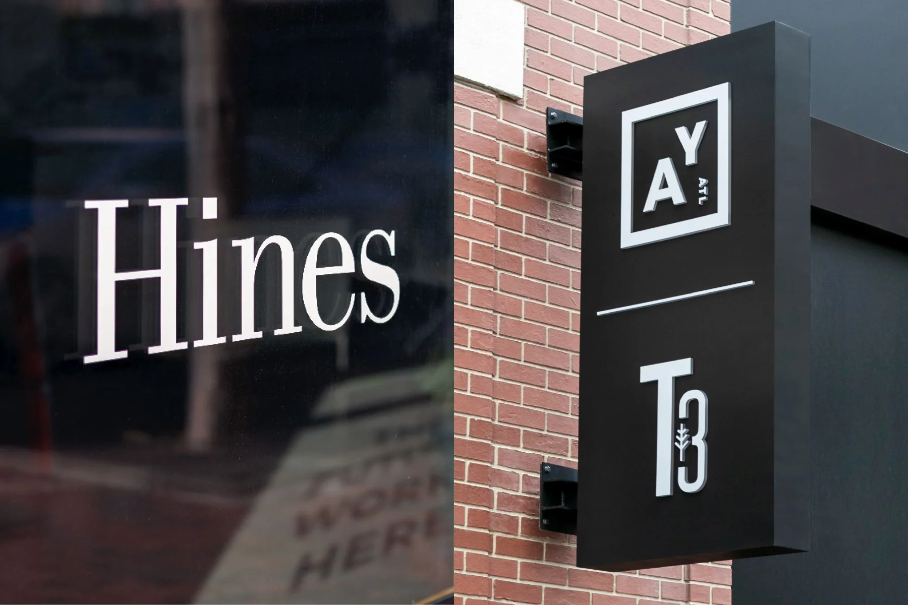 Located in Atlantic Station, this combination marketing center space represents the unique brands and architectural characteristics of two Hines projects: T3 West Midtown and Atlantic Yards.